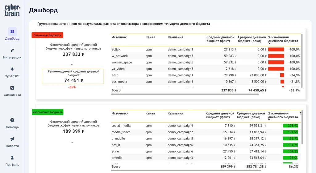 CyberBrain ежемесячно оптимизирует бюджеты на 23% за счёт автоматизации, атрибуции и AI-оптимизатора