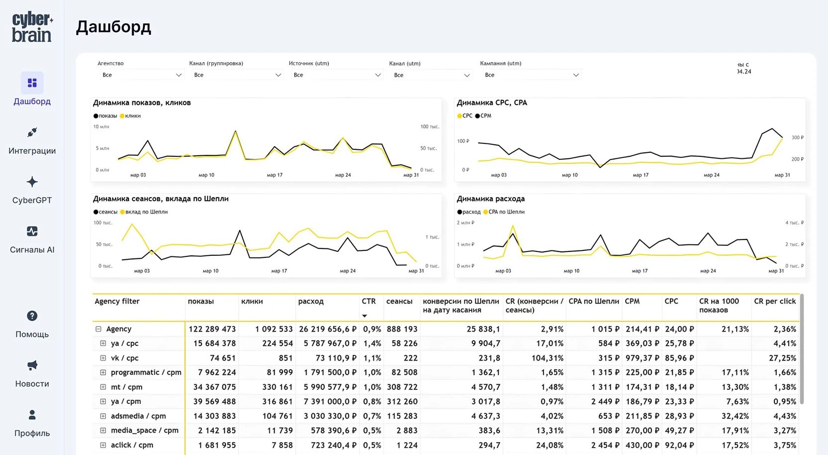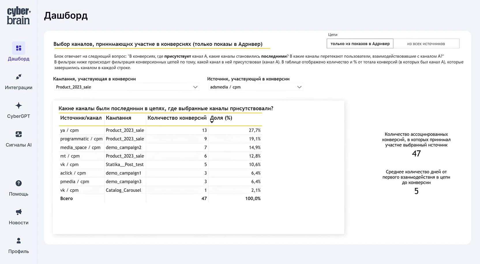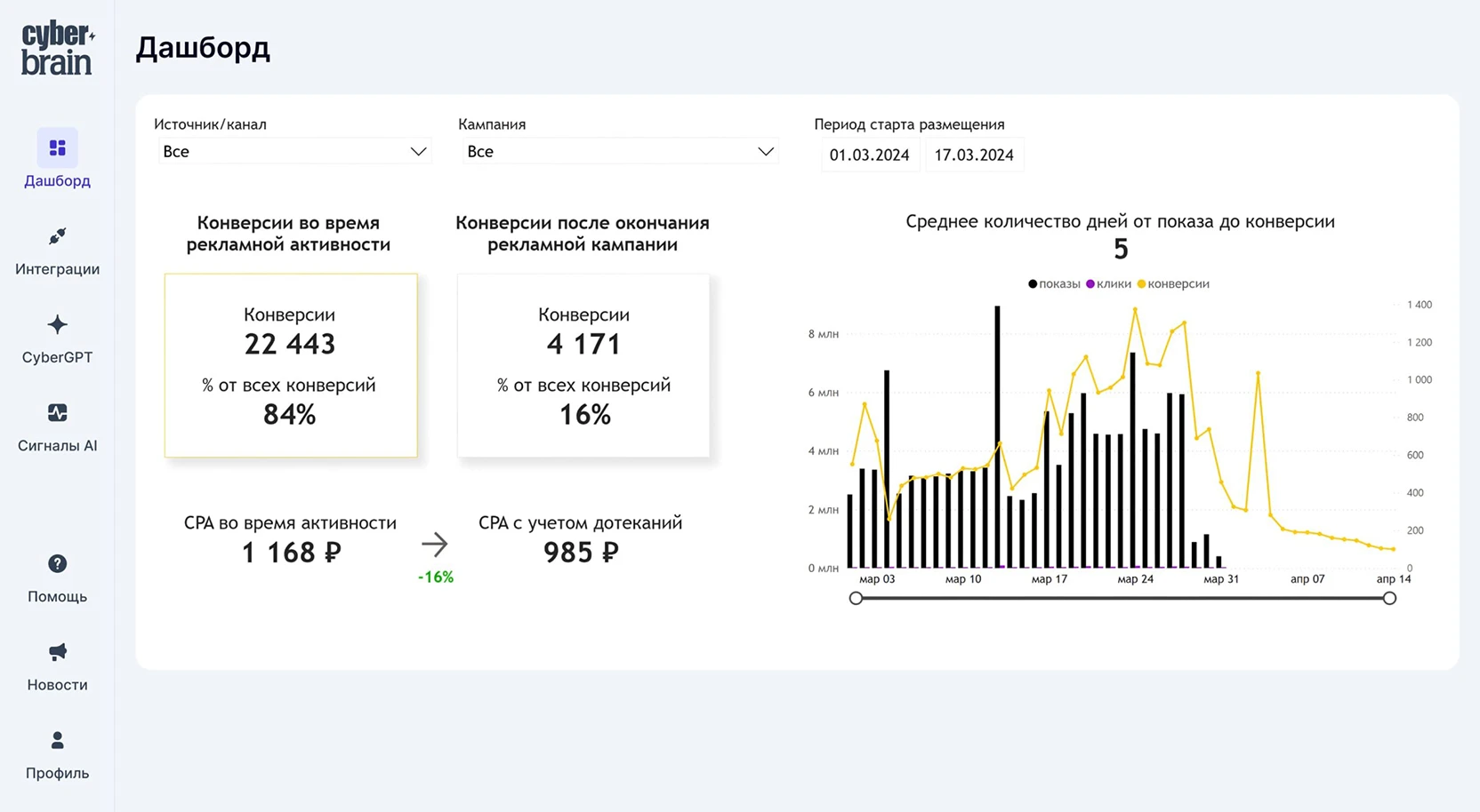 Эффективность от показов до продаж и CPA с детализацией по каждому каналу и площадке