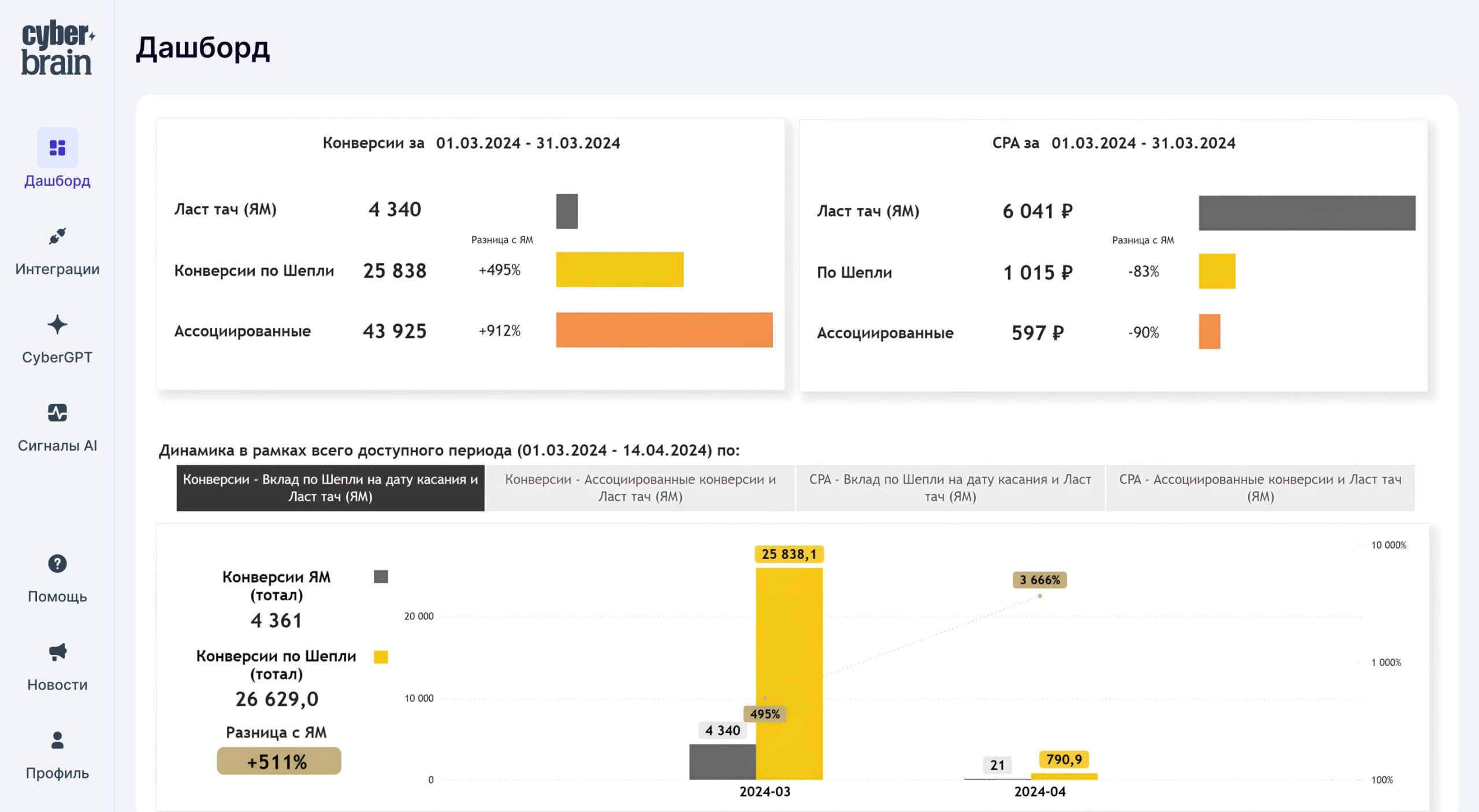 Ключевые метрики по сайту, атрибуция, финансы и динамика целевых действий