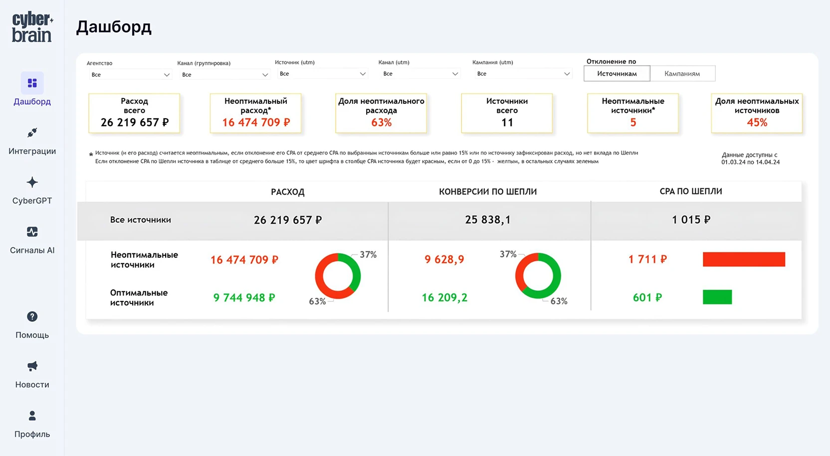 Рекомендации с точностью до рубля на уровне источников, кампаний, креативов и таргетингов